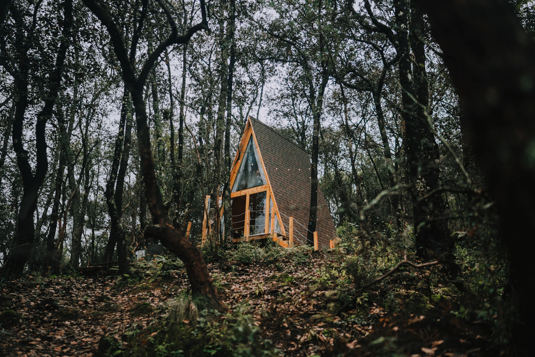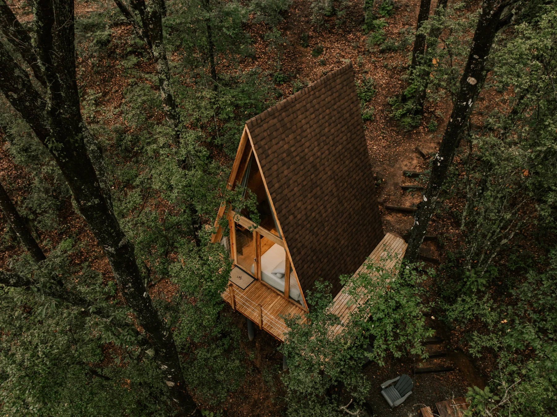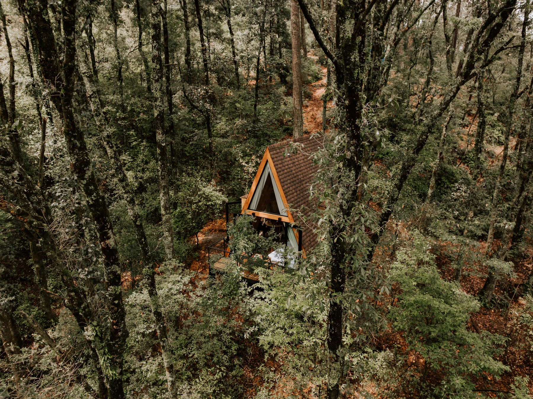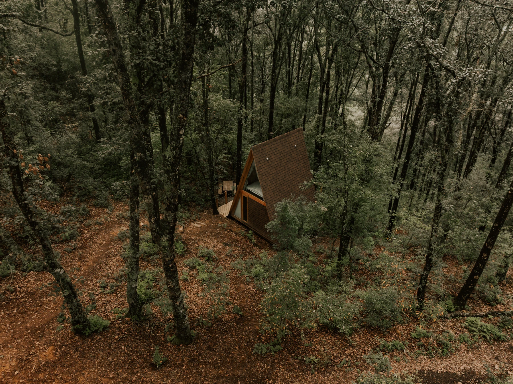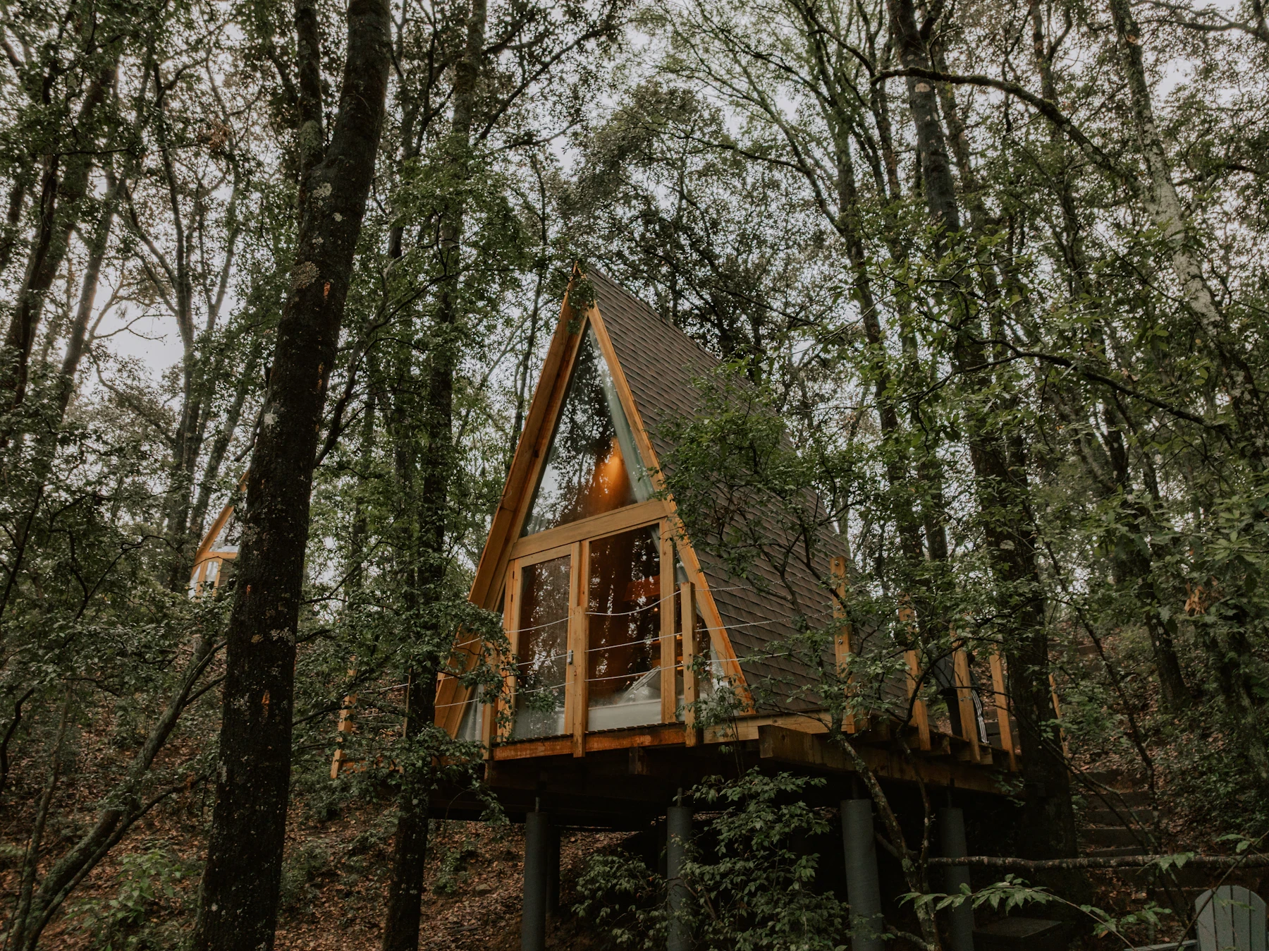 Nuestra cabaña estrella, la A Frame, pero ahora en Mineral del Chico. La cabaña, aislada de las demás para garantizar la máxima privacidad, cuenta con DOS camas Queen con sábanas y almohadas frescas. La cama principal se encuentra en un tapanco privado con vista al bosque. Ambas camas siempre están a la vista de una ventana, con vistas panorámicas a través de un enorme cristal redondo permiten a los huéspedes disfrutar de la belleza del bosque.