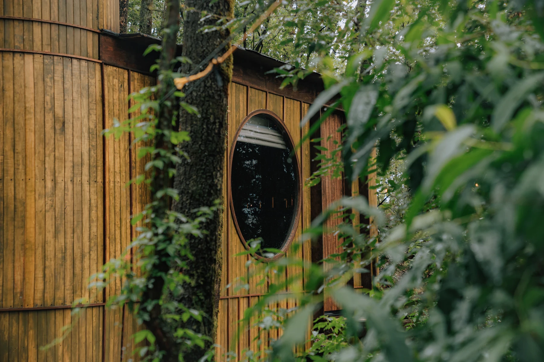 Una de nuestras 5 cabañas con nuevo diseño en Mineral del Chico. La cabaña, aislada de las demás para garantizar la máxima privacidad, presenta un diseño circular innovador que se integra perfectamente con el entorno natural. Las vistas panorámicas a través de un enorme cristal redondo permiten a los huéspedes disfrutar de la belleza del bosque desde la comodidad de su cabaña, creando una conexión íntima con la naturaleza. La segunda cama es tamaño individual.